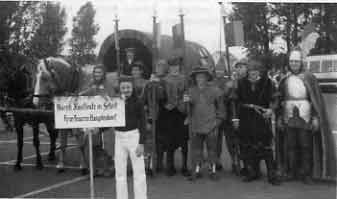 Die Zeit des 1000jährigen Reiches erlebte man auf dem Dorf viel ruhiger als in der benachbarten Stadt. Doch soll dies nicht heißen, daß man am Land nicht auch - wenigstens teilweise - gleichgeschaltet worden ist. Der Eintritt in die Partei war ebenso erwünscht wie in der Stadt, und wie überall gab es begeisterte Anhänger des neuen Regimes. Unsere Hauptendorfer besuchten Kundgebungen und Veranstaltungen, wie sie im Bayerischen Hof oder im Vereinshaus Herzogenaurach häufig abgehalten wurden. Peter Händel, der damals ein Motorrad fuhr, mußte zusammen mit seinen Arbeitskollegen Herberger und Bucher nach 'Höchstadt, um dort für den "Motorsturm" inSechserformation mit den Motorrädern zu üben. Dazu wurde das Lied mit dem Refrain "Wir sind der Motorsturm 3-5, Heil ihm!" gesungen.